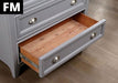 Take serenity home with this chest from the Castile collection. Topped with beautiful crown molding details, the gray finish and the nickel cup pulls complement each other well in tone and hue.