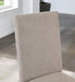 Eye-catching with its unusual light and dark motif, this dining set can easily bring style and class in your home. Each one upholstered in gray linen fabric with unique pleated backs and stretchers on both sides. It's a fantastic addition to any transitional decor looking to upgrade their seating without compromising floor space or style.