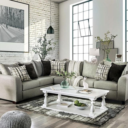 FOA WestOriginal price $3,709.99Original price $3,709.99 - Original price $3,709.99Original price $3,709.99Current price $2,849.99$2,849.99 - $2,849.99Current price $2,849.99| /The plush, contemporary, pillow-back Walter Sectional features light gray linen-like upholstery and a versatile L-shaped design. Included contrasti...