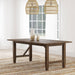 Set the tone in your stylish home with the welcoming ambiance of a modern farmhouse dining table. The rectangular table features a clean, streamlined silhouette complete with a recessed apron and decorative diagonal braces that bring architectural appeal. The table offers a natural wood finish to highlights its beautiful mahogany and Asian hardwood construction and veneers. The tabletop expands with the addition of the leaf, which measures 18-inches across to add seating for two more of your favorite people. Tapering feet are a subtle finishing touch, defined with linear trim that adds the perfect dose of dimensionality.