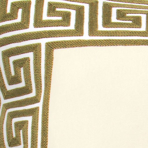 This square pillow features intricate floral patterns in subdued shades of green and brown on an ivory backdrop.