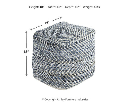 Ashley FurnitureOriginal price $169.99 - Original price $169.99Original price $169.99Current price $129.99$129.99 - $129.99Current price $129.99| /This darling pouf is queen of the blue jeans. Woven from strips of denim, the square shape will be a favorite go-to seat or ottoman. It’s also stur...