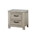Tywyn Antique White Night Stand, 23 5/8"L X 15 3/4"W X 24"H, 49.5lbs. This highly versatile night stand will fit into almost any bedroom aesthetic. The weathered finish shows just enough wear without hampering the lovely wood grain on the drawer faces, which add a hit of natural shape. Antiqued drawer pulls add a quiet touch of class to the piece. Features: Antique Drawer Pulls Felt-lined Top Drawers Molded Trim Details Metal Bar Pull Drawer Hardware Felt Lined Top Drawer English Dovetail Drawer Construction Slat Kit Included