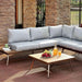 Sunday BBQ's and pool parties just got so much better! This versatile patio set doubles as an L-shaped sectional or a two-piece sofa set. Mid-century modern designs can be seen in the angled legs and plank style surfaces, while neutral gray colorings provide a subtle invitation to relax on the foam filled cushions. Product Dimensions: 31.5"W x 31.5"L x 13.13"H