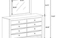 Add elegance and storage to your bedroom with this eight-drawer dresser and matching mirror set. Finished in a sleek black tone, the dresser features chambered drawer fronts and brushed nickel hardware that bring depth and sophistication. Its spacious drawers glide smoothly to store clothing and accessories, while the framed mirror enhances balance and light within the room. Crafted from rubberwood, engineered wood, and okume veneer, this dresser and mirror pair offer enduring quality and timeless style. Key Features: • Eight-drawer dresser and mirror set with refined transitional design • Sleek black finish enhances depth and modern visual appeal • Chambered drawer fronts offer dimensional, sculpted character • Framed mirror adds balance and brightens the bedroom interior • Brushed nickel hardware provides subtle metallic sophistication • Rubberwood, engineered wood, and okume veneer ensure durability
