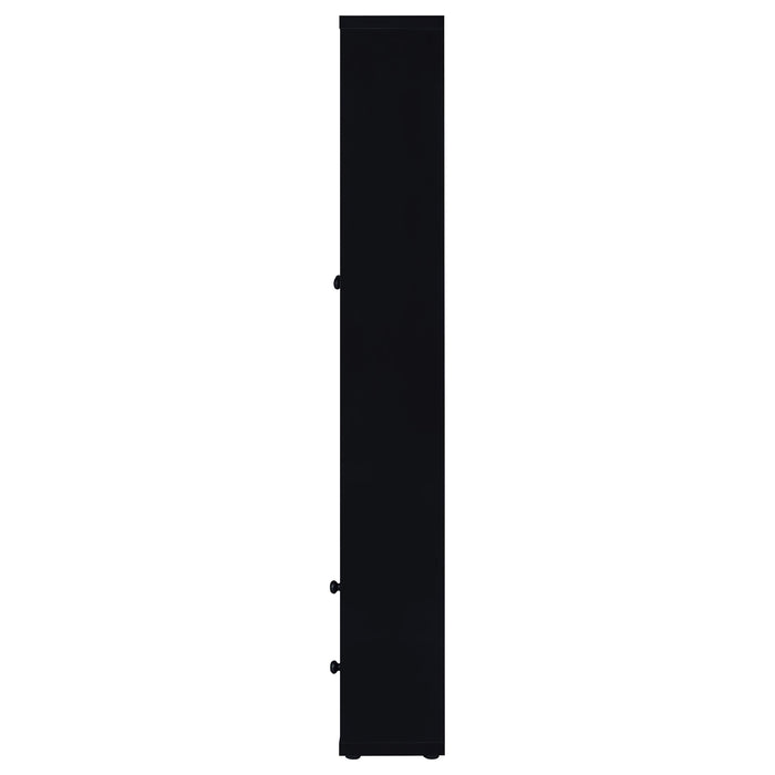 Glass doors are a key feature on a modern accent cabinet that blends into a variety of decors and living spaces. Providing four shelves for showing off everything from glassware to travel souvenirs, the cabinet features wood framed glass doors. They open to reveal two stationary and two adjustable shelves to accommodate all manner of items. In the base of the cabinet, two drawers add concealed storage, perfect for linens in the dining room, games in the den, and much more. The cabinet shows off a streamlined silhouette with petite round knobs that add the barest hint of texture and dimension to a neutral finish. Key Features: • Organize decor with the compact silhouette and plentiful storage of a transitional accent cabinet • A clean-lined silhouette features glass doors perfect for displaying decor • Shelves include two that are adjustable for precision configuration to accommodate your needs • Two drawers offer easy concealed storage for a tidy, refined look in your den, entry or dining room • Legs include plastic glides for smooth performance and a tip over restraint is included for safety
