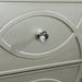 MANAR Cal.King Bed, 90 1/4"L X 79"W X 62 1/4"H, 198lbs. The glamor is in the details of this bedroom set from the Manar Collection. The headboard is upholstered in a faux leatherette, button-tufted with crystal-acrylic buttons, and embedded with a LED light, creating a sparkling aesthetic. The matching pieces feature a decorative, circular pattern, only adding to opulence of the design. Your bedroom will be a place to pamper yourself with this set.