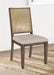 A trio of natural hues brings refined but casual character to a modern farmhouse dining chair. Perfect for friends and family enjoying delicious meals, the chair features a plush foam seat with beige upholstery. Its back is rattan, adding texture and character while maintaining a light, airy look and feel that's rich and breathable. Its classic stance features an armless silhouette complete with a gently angled back and straight, tapering legs. The natural finish of the wood offers a refined but accessible look, perfect for inviting family spaces. Key Features: • A dining side chair creates inviting ambiance with stylish rattan and understated design • Straight, tapering square legs feature carved linear accents at the top for a crisp, clean look • Warm natural wood finish highlights simplicity of design and subtle elegance • Woven rattan back is light and airy, offering textural contrast and depth • Seat is padded with foam and upholstered in beige for appealing comfort and neutrality